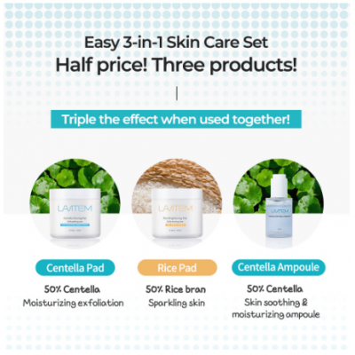 Inicio > [LAVITEM] Centella Asiatica Cleansing Pad 1 + Rice Brightening Pad 1 + CENTELLA SILK BLUE AMPOULE 1