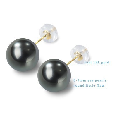 Inicio > vestir > Extrañar > Tahitian Real Pearl Earrings for Women, Black 18k Gold Stud Earrings, Hypoallergenic Earrings with G
