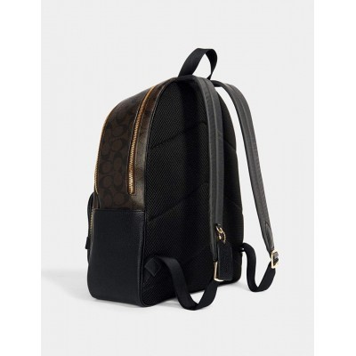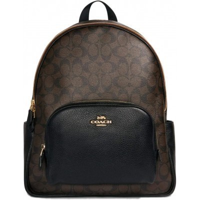 Большой женский рюкзак Coach Court из фирменной парусины (коричневый - черный)