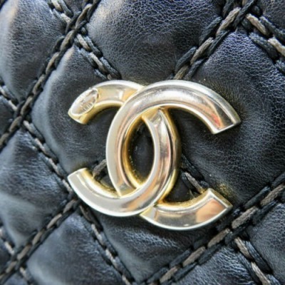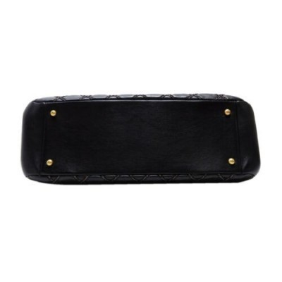 CHANEL Black Accordion Chain Shoulder Handbag Quilted Calfskin Leather