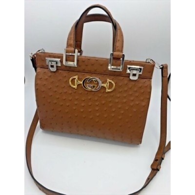 Кошелек GUCCI ZUMI из кожи страуса 54 коричневая сумка через плечо с замком и ручкой сверху