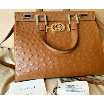 Inicio > vestir > Extrañar > Кошелек GUCCI ZUMI из кожи страуса 54 коричневая сумка через плечо с замком и ручкой сверху