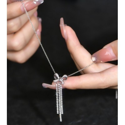 Inicio > vestir > otro > ATTAGEMS Moissanite Diamond Natural 18K Gold Pendant Bow Necklace for Women with Silver Chains