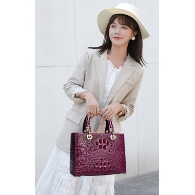 Crocodile pattern Genuine Cowhiki 2022 New Large Luxury Leather Shoulder Bag