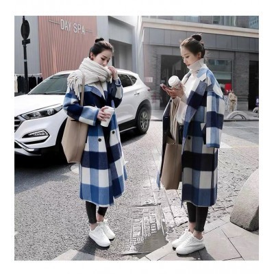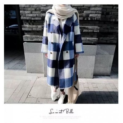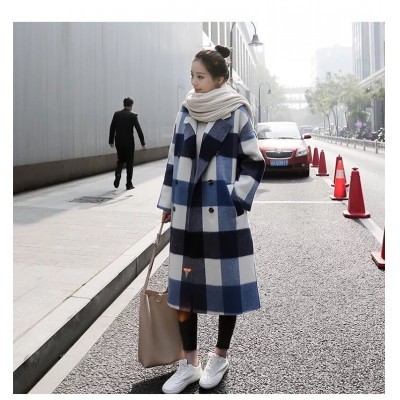 Casual Loose Winter Midi Womens Plaid Wool Coat Elegant Slim Streetwear Warm Coat Ladies Fashion
