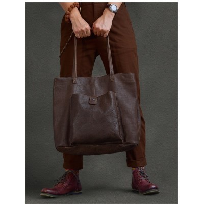 Inicio > bolsas > Fashion retro luxury natural real leather mens oversized tote bag daily outdoor travel large-capaci(