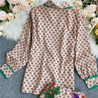Inicio > vestir > Fashion Vintage Two Piece Set 2022 Summer Turn Down Collar Long Sleeves Blouse Lady Tops+ Shorts Wom