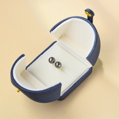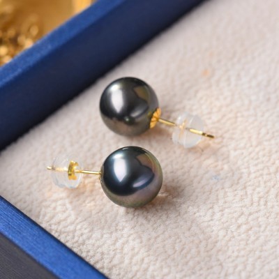 Tahitian Real Pearl Earrings for Women, Black 18k Gold Stud Earrings, Hypoallergenic Earrings with G