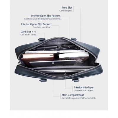 GIONAR Genuine Real Leather Briefcase Men Designer 14 inch Crossbody Laptop Bag Women Unisex Luxury