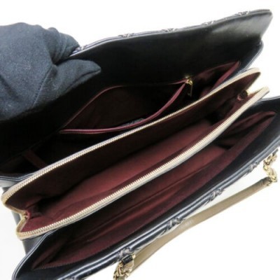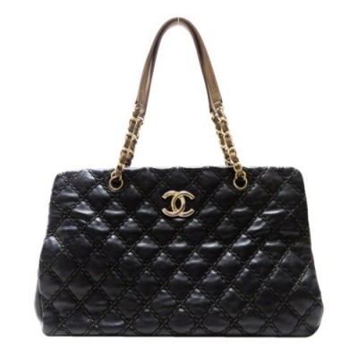CHANEL Black Accordion Chain Shoulder Handbag Quilted Calfskin Leather