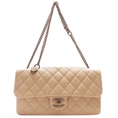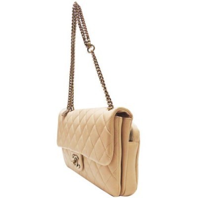 Inicio > vestir > Extrañar > CHANEL Бежевая сумка через плечо с клапаном-аккордеоном и цепочкой из стеганой телячьей кожи