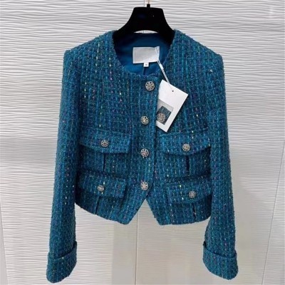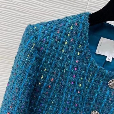 brand designer winter wear luxury vintage blue tweed jackets for women 2022 crystal buttons shor