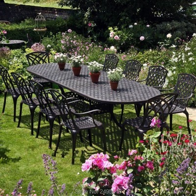 Inicio > exterior > طقم طعام فاخر مكون من 11 قطعة، مصنوع من معدن متين مقاوم للصدأ، يتضمن كرسي وطاولة طعام من شركة فيلا ك
